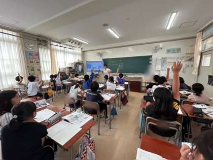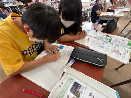 4年生は0.1より少ないかさをL単位で表す方法を学習しています。3年生で学習した「1より少ないかさ」について思い出し、目もりをつけることに気づくことができました。また小数で表された新幹線の線路幅の長さを実際に確かめながら学習しました。