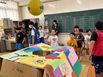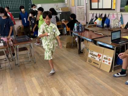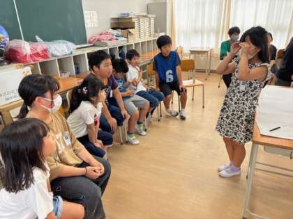 ボールを運んだり、シュートをしたり楽しそうです。ジェスチャーゲームではお店の子が何の真似をしているか当てています。