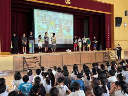 今日は平和について考える集会を行いました。人権教育の先生から、東淀川戦没者慰霊祭のお話を聞きました。また、地域に残る戦跡も教えてもらいました。いじめ防止委員会の子どもたちも、子どもたちが考えた平和についてのアンケートの結果を発表してくれました。みんなで考えて、自分たちにできることを実践できる子どもに育ってほしいです。