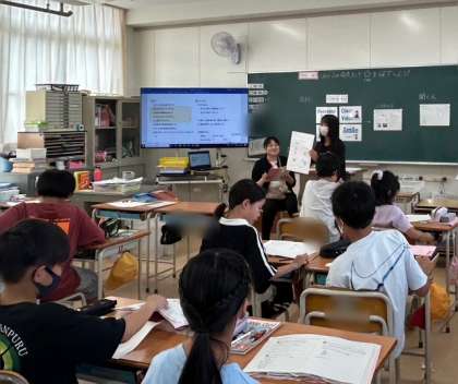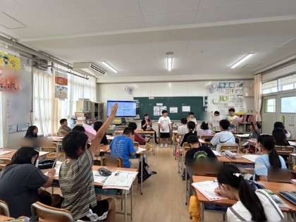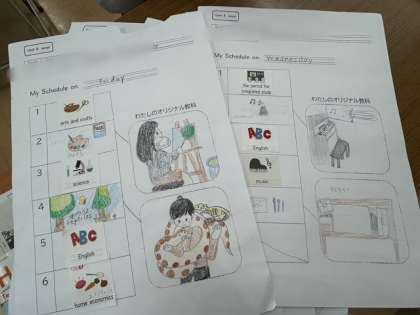 5年生では、こんな教科があったらいいなぁと希望のオリジナル教科を考えました。ダンスに映画、動物に触れ合う授業など、みんなに伝えたい教科を英語で発表しました。中には…「宿題ができる教科があったらなぁ〜」と話す子どもも?気になる教科について質問しているお友だちもいました。
