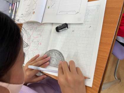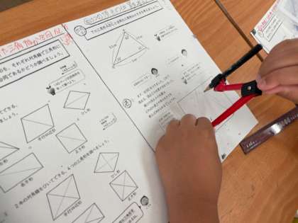 5年生は合同な図形を学習しています。コンパスや分度器を使って合同な三角形を作図しています。ずれないように丁寧に作図しています。自主学習でも取り組んでみましょう。