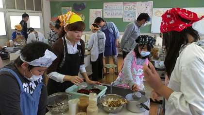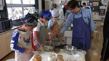 きのこについていろいろ教えてもらった後は、いよいよきのこを使った味噌汁作りにチャレンジです。コツを教えてもらいながら、おいしい味噌汁ができるかな。