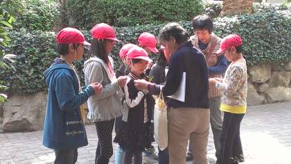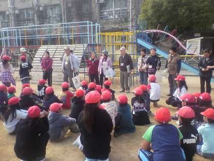 4年生は、理科の学習で、シニア自然大学校インタープリテーション科の方々と地域のボランティアの方々に来ていただいて、校内の自然観察会を行いました。
