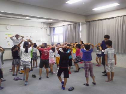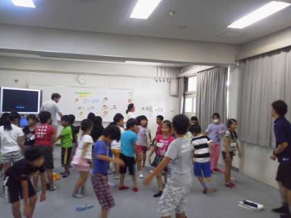 楽しそうに、体を動かしながら、体の部位や右・左などを英語で話していました。