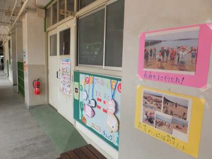 校舎内には,写真を掲示して全校が見れるように工夫しています。
