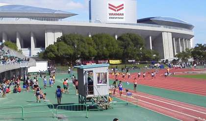 秋晴れの気持ちのよい空の下、長居の第2陸上競技場(ヤンマーフィールド長居)で陸上競技会がありました。