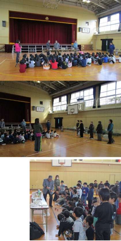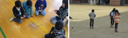 地域の皆様をゲストティーチャーとしてお招きし、1年生に昔の遊びを教えていただきました。地域の方が上手に駒を回すと、こどもたちから歓声が上がっていました。色々な遊びを体験し楽しそうでした。