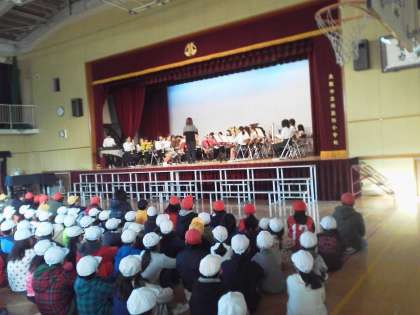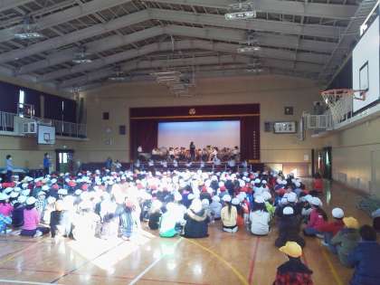 約20分間、校歌も含めて、楽しい曲紹介やダンスもあって、みんなが聞き入っていました。1年間、つづけた成果が発揮されていました。