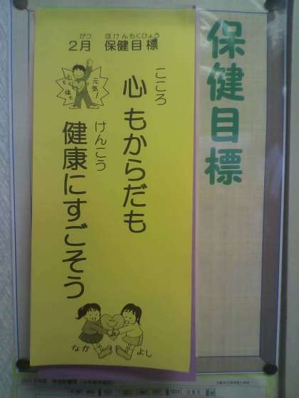 2月の保健目標は『心もからだも健康にすごそう』です。