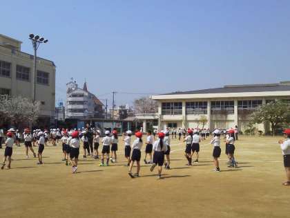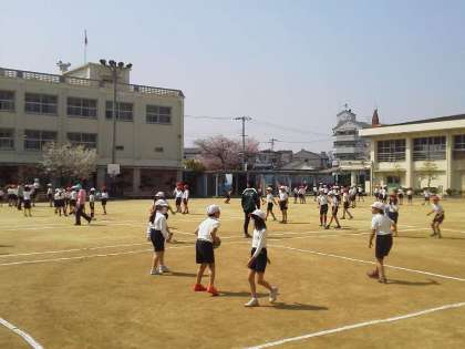 最初の並び方を確認し、みんなでドッジボールをして汗を流しました。