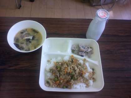 メニューは写真にあるとおりで、今日の子どもたちと同じメニューでした。
