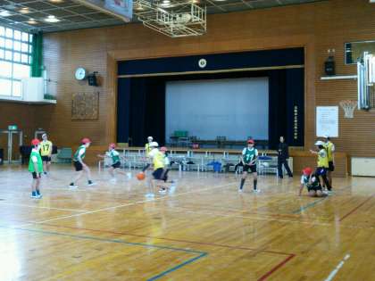 今年は、西淡路小学校に集まり、バスケットボールとドッジボールをして、楽しみました。とても寒い日でしたが、みんな最後まで笑顔で楽しく活動していました。