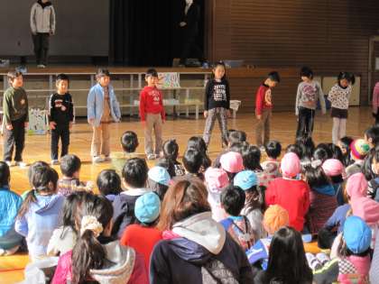 1年生が、次年度入学予定の保育所・幼稚園の子どもたちを招待しての交流会を開催しました。日之出・西淡路第1・第2保育所からは先生と、その他の幼稚園・保育所からは保護者の方と一緒に参加してもらいました。