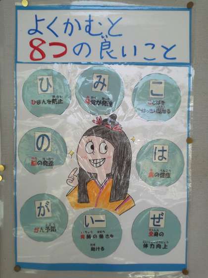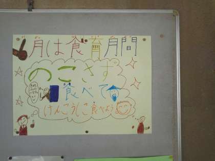 今月は食育月間です。給食室前の掲示も工夫しています。