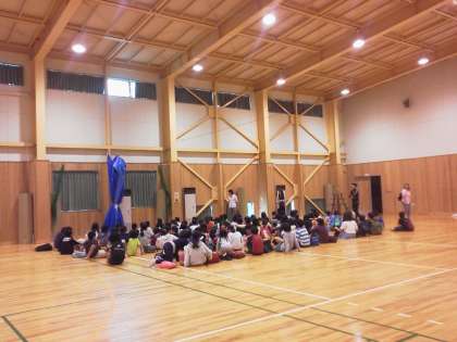 ジェスチャーゲーム、おおなわ、バスケットボール、ダンス、シートにみんなでのるといった内容がありました。