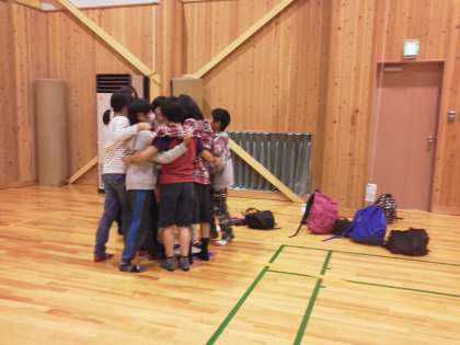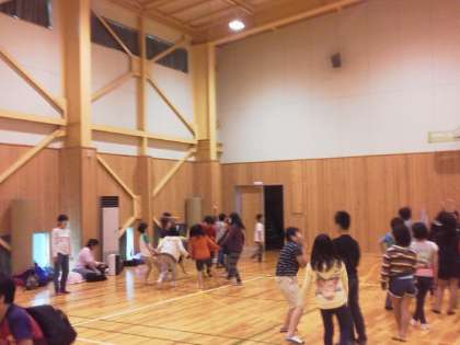 あいにくの雨ではありますが、グリーンロッジさんには大きな体育館があります。