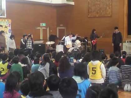 先生バンドも登場し、伴奏に合わせて6年生が歌とダンスを披露してくれました。