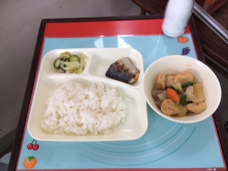 さごしの塩焼き じゃがいもと一口がんもの煮もの キャベツときゅうりのゆずの香あえ です。