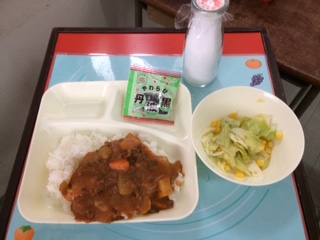 今日のメニューは、ハヤシライス、野菜サラダ、ソフト黒豆 です。