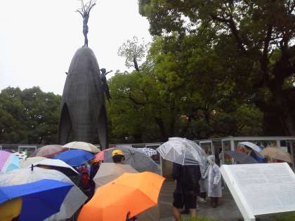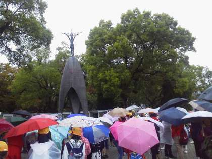 続いて、原爆の子の像前へ。2歳で被爆し10年後に白血病で亡くなった佐々木禎子さんがモデルになっており、同級生の募金活動、国内外の支援により完成した像です。