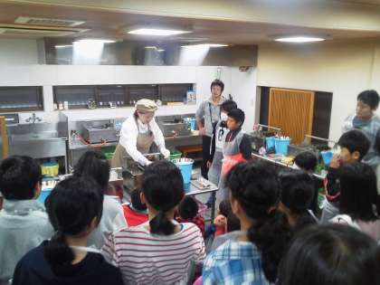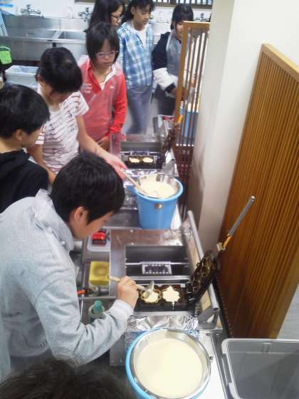 2つの会場に分かれて、もみじ饅頭づくり体験に取り組みました。
