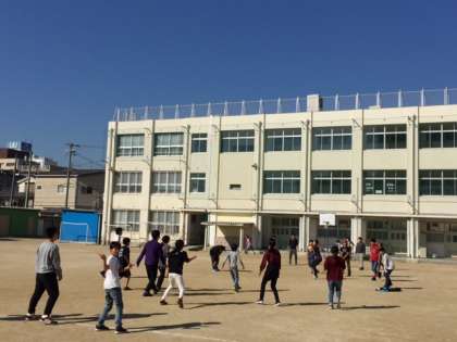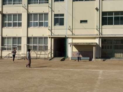 同じく留守番の教職員とともにドッジボールも楽しんでいました。