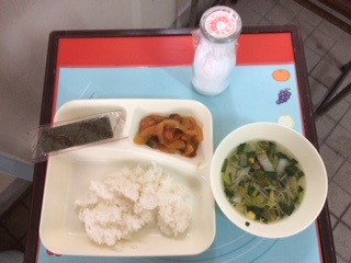 今日の献立は、酢豚、中華スープ、焼きのり でした。