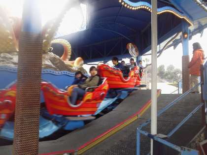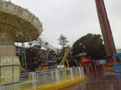 昼から、雨が少しやんだ時間帯には、午前中には止まっていたアトラクションがいくつか動き出しました。新しいものにも乗れて午後も楽しんでいました。