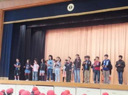 児童集会で,児童会議メンバーの自己紹介がありました。