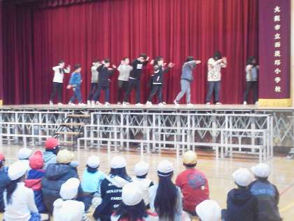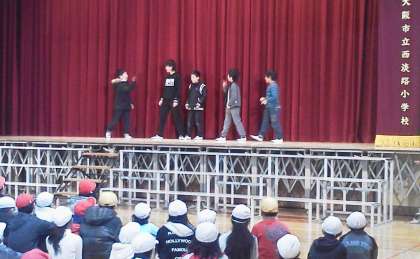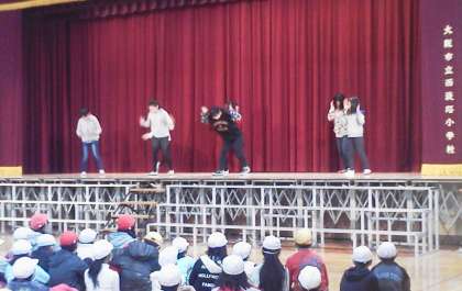 今日の児童集会で、パフォーマンスクラブの発表がありました。