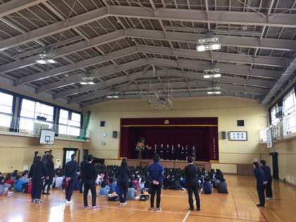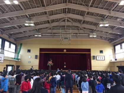 今日から新学年。1学期の始業式が行われました。西淡路小学校に新しく来られた教職員の紹介のあと、校長先生のお話を聞き、待ちに待った担任の先生の発表。学年の先生が発表されると、子どもたちから大きな歓声があがっていました。