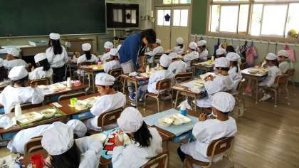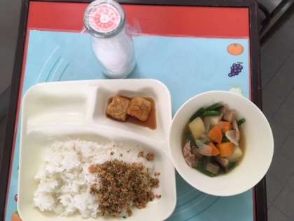 給食が始まって3日目、毎日、給食の時間が楽しみのようです。