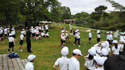 今日は4年生が長居公園へ遠足に出かけました。あいにく曇り空で、時折小雨も降りましたが、自由遊びの時間やお弁当の時間は外で過ごすことができました。自然史博物館では「恐竜の卵」の特別展があり、普段なかなか目にすることのできない恐竜の卵や骨格標本を見ることができました。