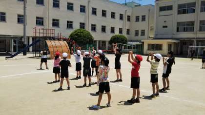 3・4年生は、練習にタブレットを活用していますが、今日はグループごとに自分たちのダンスを動画撮影し、その動画をグループ全員でチェックして改善点を話し合いました。「自分たちのダンスをもっとよくしていこう!」という気持ちが高まり、とてもいいムードで練習が進んでいます。
