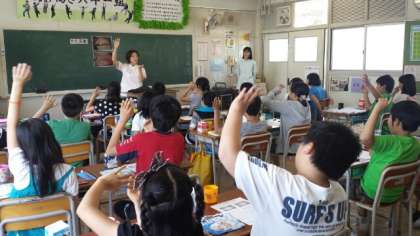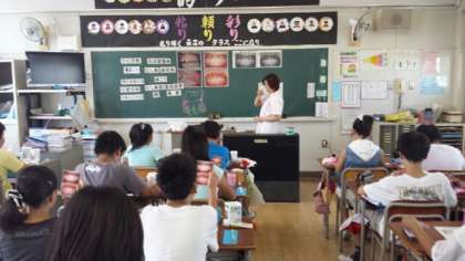 歯科衛生士さんに来ていただいて、歯周病予防や虫歯予防の学習をしました。