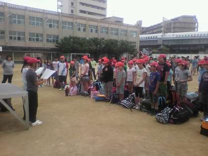 5年生が保護者の皆さんや他の学年の子どもたちから見送られ、元気に出発しました。