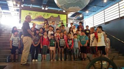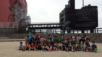 砂浜でセンターをバックにみんなで写真を撮ったあと、開所式を行いました。