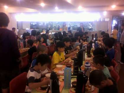 今朝はすでに朝のつどいをおこない。少し体をほぐしたあと、みんなで朝食をいただきました。