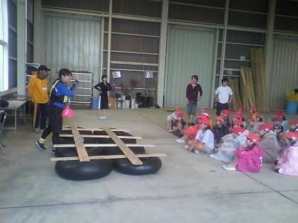 今日の午前中は「いかだ作り」