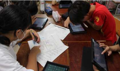 行き先や時程は各グループに完全に任されるので、どのグループも活発に意見を交換し合って、行程を決めていました。各自がタブレットを持って、自分たちが行く施設のことを調べたり、電車の乗継ぎや時刻を調べたりしていました。当日が楽しみですね!