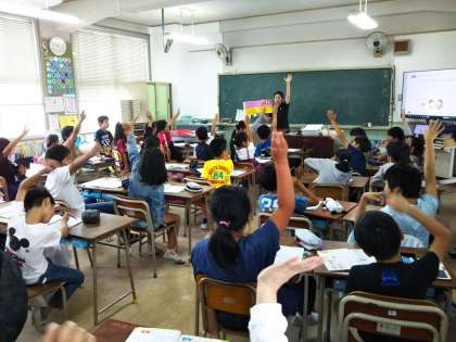 今日は「Do you like〜?」の表現を使って、コミュニケーションの取り方を学習しました。友だちと英語でコミュニケーションをとることは少し恥ずかしいところもあるみたいですが、すぐに慣れてみんな楽しそうに学習できていました。よく手も挙がっていましたよ!