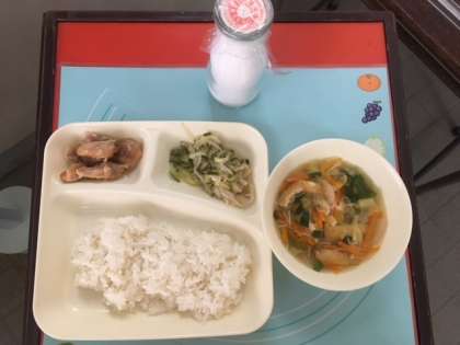 今日の献立は、鶏肉のしょうゆマヨネーズ焼き、五目汁、切り干しだいこんのゆずの香あえ、ご飯、牛乳 です。