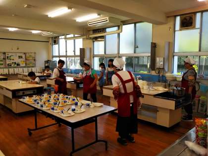 今朝、朝ごはんやさんが行われている家庭科室の前を通ると、ほんのり甘いケチャップの香りが…。中をのぞいてみると、今日はチキンライス!
