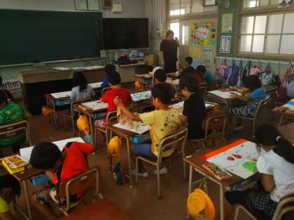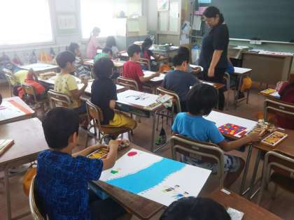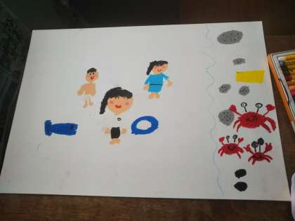 楽しかった出来事をテーマにパスで絵を描き、そのあと絵の具で背景を塗っていく予定です。