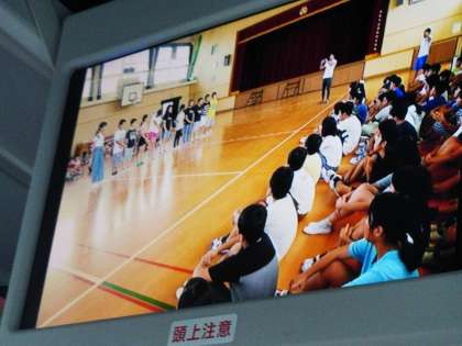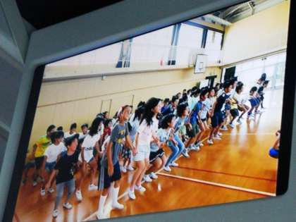 現在は、自然体験教室に向けての6年生との交流会の様子です。6年生から、自然体験教室での心がまえや、チームで取り組むダンスについて教わりました。