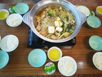 2日目の夕食は鳥鍋!今夜も食欲がわきますね。