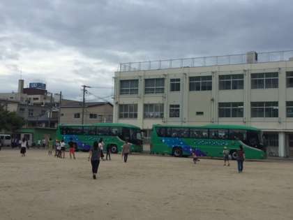 16:30頃、5年生が乗ったバスが2台、運動場に帰ってきました。