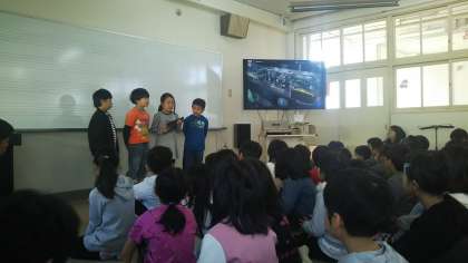 今日、2年生は「町たんけん」の発表会を行いました。