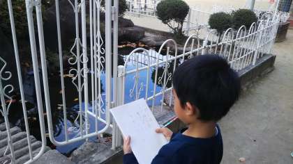何をしているのかな?と尋ねると、国語の学習で、身の回りの花や木、生き物の様子を見て、気づいたことを「はっけんメモ」に文章で書いているとのこと。メモを見せてもらうと、子どもたちならではの感性で感じたことを一生懸命、文章で表現していました。