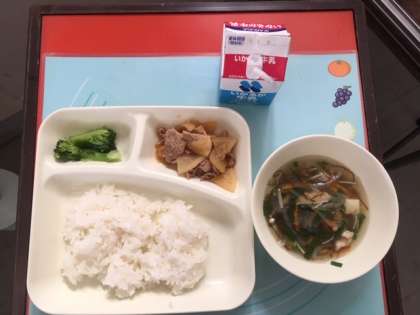 今日の献立は、学校給食献立コンクール最優秀賞作品です。献立のねらいは、「学校給食の献立をもとに、韓国・朝鮮料理風にアレンジし、他の国の食について考えるきっかけになればと思いました。」だそうです。